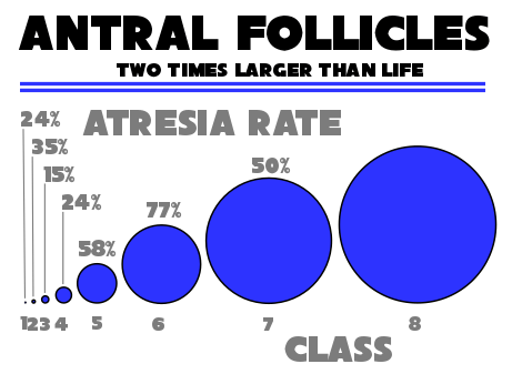 Late tertiary follicles – those in classes 5 to 8 – grow from 2mm to 20mm in only 20 days! The speed of growth is increasing, but so is the rate of atresia.