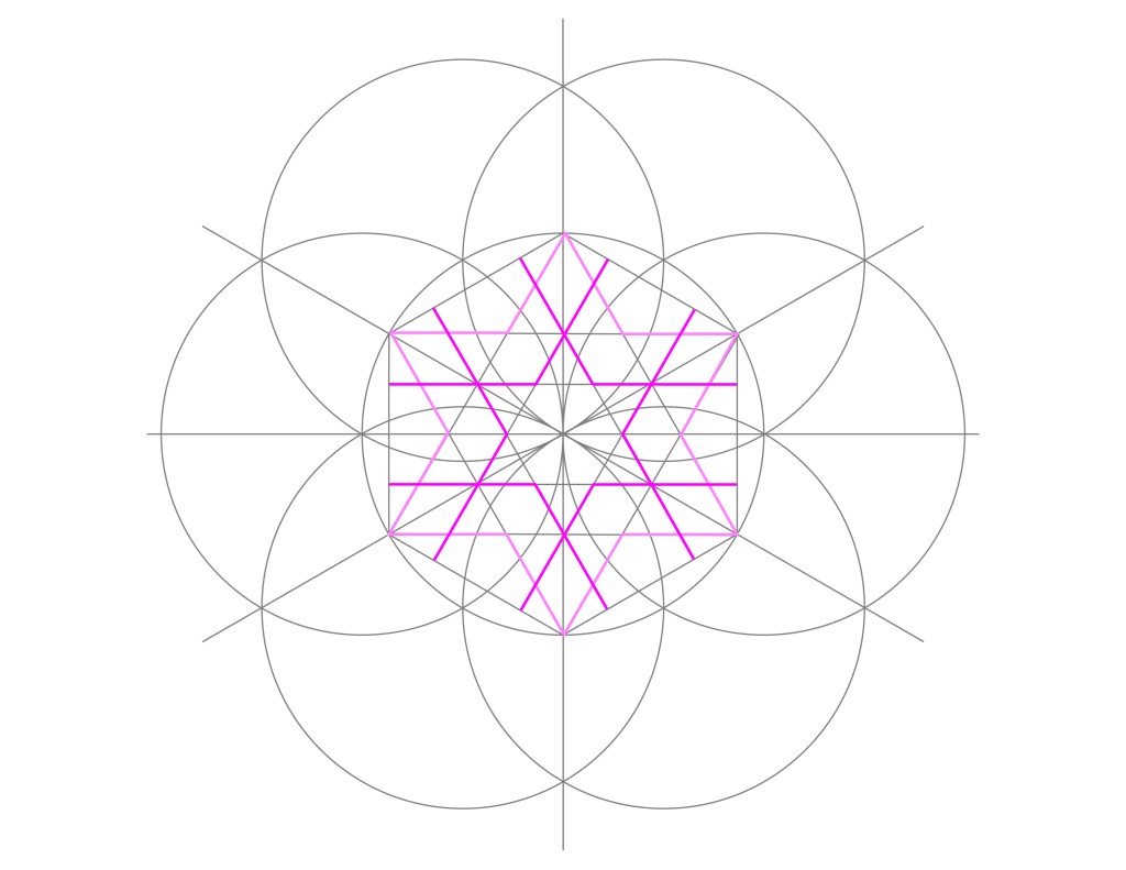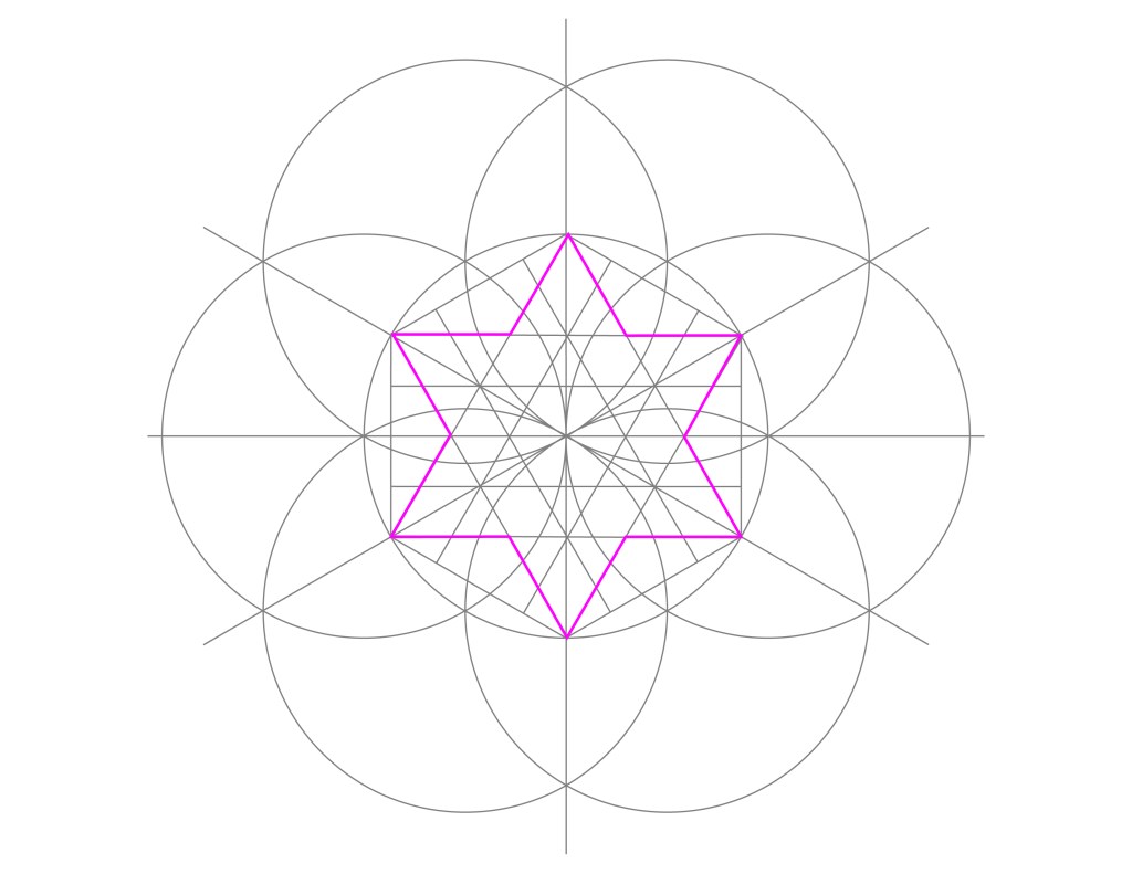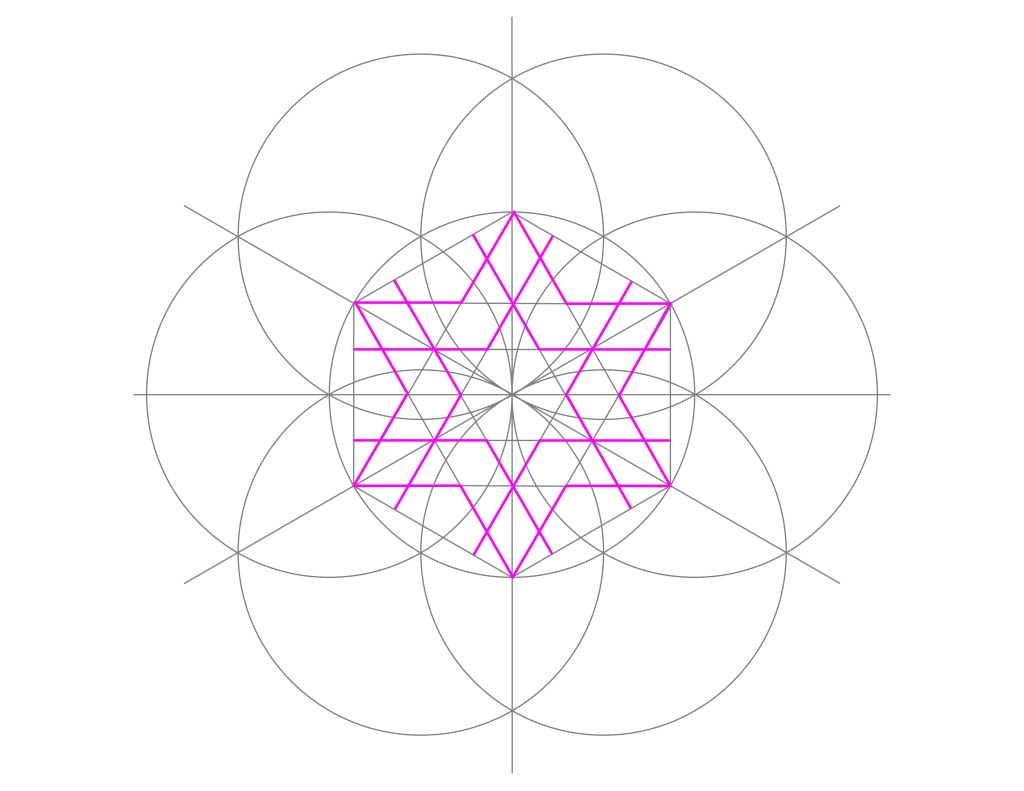6. Use these points to draw another regular six-pointed star, extending the lines all the way to the dynamic hexagon that you drew in step 3.